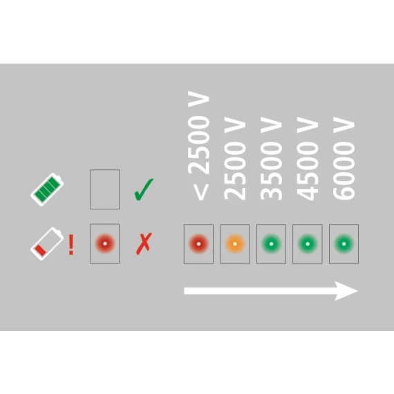 • Flerfarget LED-søylediagram gir klar informasjon om utgangsspenning og batterikontroll.