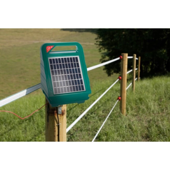 - Høyeffektiv kompakt solcelleenhet, ideell for beiteområder og mindre gjerdesystemer uten vegetasjon. Enheten har dyp utladningsbeskyttelse for batterispenning under 11,2 Volt (hvis aktivert, blinker den kun rødt). Bruk solens naturlige kraft! Den er optimalisert for vedlikeholdsfri kontinuerlig drift gjennom beitesesongen på gjerder med lite vegetasjon og er utstyrt med en Av/På-bryter. Enheten har integrert batteriladeregulering og er mikrokontrollerstyrt. Den har også integrert lynbeskyttelse og intelligent batteristyring, som sikrer at enheten fungerer selv i lange perioder med dårlig vær. Med utmerket effektivitet oppnås lengre batterilevetid. Det svært robuste og værbestandige huset gjør enheten pålitelig i ulike værforhold.