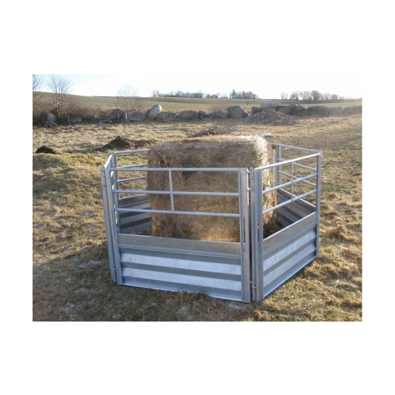 Forhekk bestående av 6 grinder og 6 koblingsspyd. Disse er da bevegelige slik at sauene selv kan dytte grindene inn mot rundballen. Gir mindre forsvinn og grindene har justerbar åpning. Med 5 grinder når en også rundt en rundballe, men da ligger grindenen helt inntil rundballen.