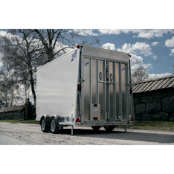 Alle Ifor Williams skaphengere har solide, vedlikeholdsvennlige hvite sidevegger. Disse veggene er enkle å rengjøre og tilpasses etter behov, med muligheter for sjalusidører, doble dører, eller kombinerte ramper og dører.