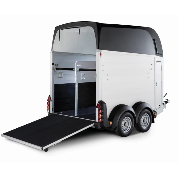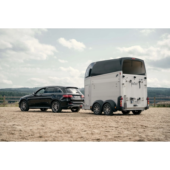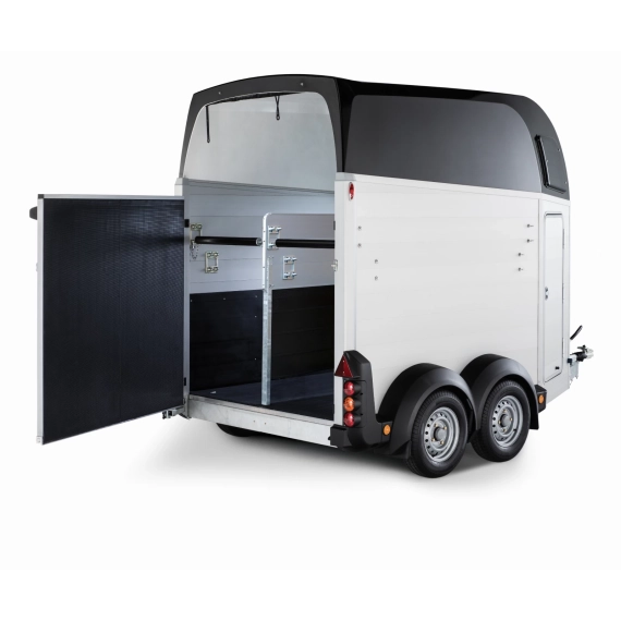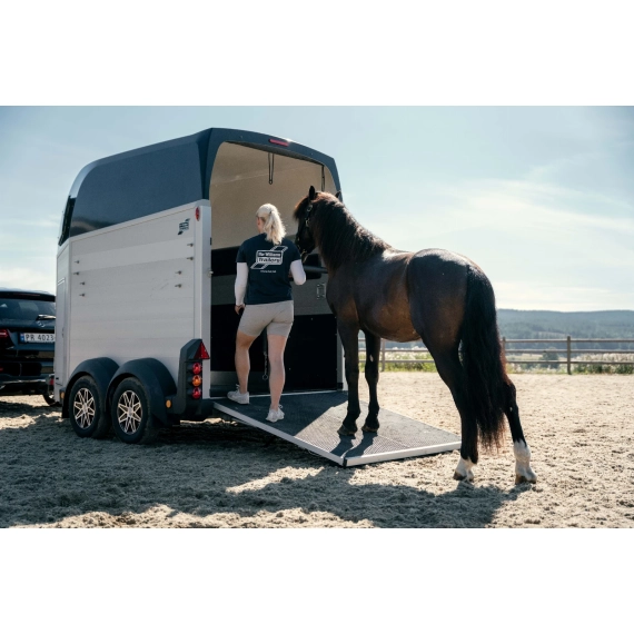 Denne hestehengeren er utstyrt med to aksler og 13-tommers hjul som standard, og den er ideell for transport av opptil 2 hester. Materialvalget av aluminium til sider, gulv og rampe gir ikke bare et stilrent og moderne utseende, men sikrer også enkel vedlikehold uten å gå på kompromiss med holdbarheten og levetiden til hestehengeren.