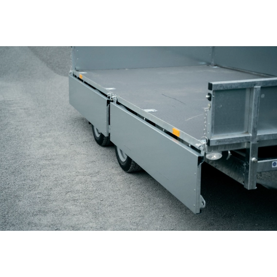 Med en egenvekt på 675 kg i standardkonfigurasjonen, er denne flathengeren optimalisert for å bære tung last uten å gå på kompromiss med sin solide konstruksjon. Med en innvendig lengde på 362 cm og en bredde på 198 cm, gir den et romslig areal på 7,17 m2.