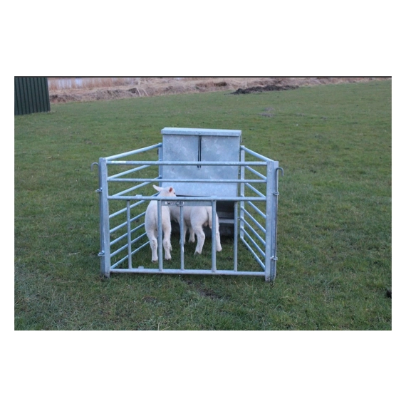 Kraftforautomat som krever liten plass men rommer likevel hele 70kg. Den er ypperlig til oppdrett av kopplam, og den kan påmonteres sorteringsgrinder som holder større dyr ute. Solid varmgalvanisert beholder og tett lokk, som gjør automaten fin også til bruk ute. Automaten er enkel og lett å renholde og dermed er det lett å holde nede smittepress.