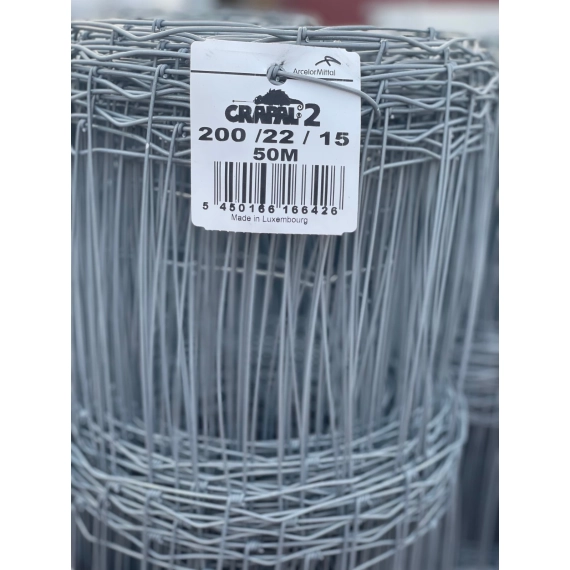 22 horisontale tråder og 15 cm avstand mellom de vertikale trådene. Topp og bunntråd er 2,4 mm, mellomtrådene er 1,9 mm. Nettingen er ypperlig til alle typer gjerding for vilt.
