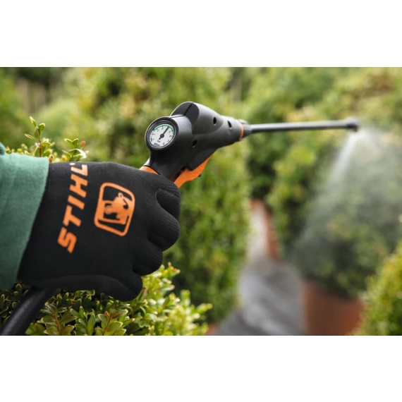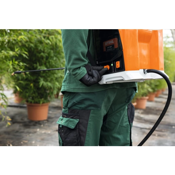 Med en vekt på 6,2 kg, som bæres på ryggen, gir sprøyten mulighet for enkel justering av arbeidstrykket fra 1 til 6 bar. Takket være et ergonomisk bæresystem med justerbar brystsele, høydejusterbar brystsele og ergonomisk midjebelte, opplever brukeren høy grad av komfort under arbeidet. Det integrerte filteret sikrer at smuss fra tanken ikke når spraylansen, og det kan enkelt rengjøres ved bytte av dysen. Et hylster på hoftebeltet gir også en trygg oppbevaringsløsning for spraylansen mellom arbeidsøktene.