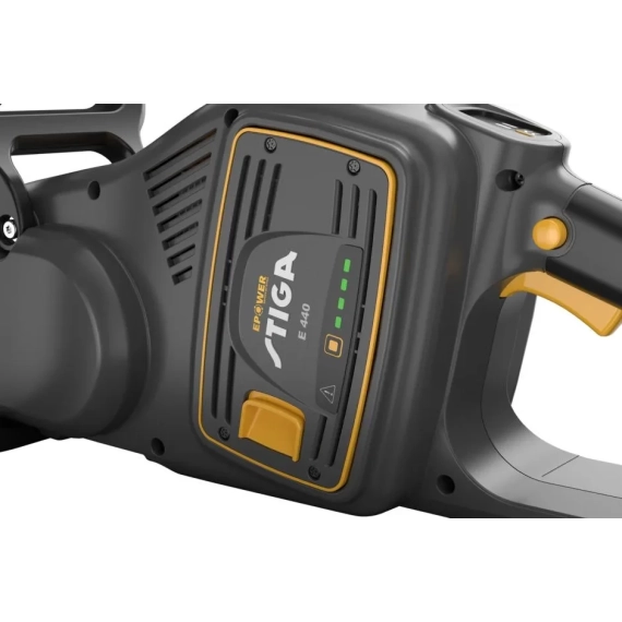 Med et kraftig STIGA ePower 48V-batteri kan du jobbe effektivt. Bytt mellom to kjedehastigheter for å balansere kjøretid og energiforbruk. Overvåk batteriet, hastigheten og bremseaktiviteten med LED-kontrollpanelet. Gled deg over mindre støy, vibrasjoner og vedlikehold med STIGA ePower. Batteri og lader må kjøpes separat.