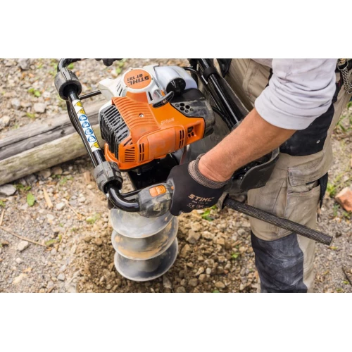 Vibrasjonsdempet håndtaksramme og et betjeningshåndtak med integrert stoppknapp sikrer at du kan jobbe med minimalt ubehag. Den ekstra sikkerheten til STIHL QuickStop borbrems er en beroligende funksjon; hvis boret setter seg fast, vil utløserhendelen stoppe rotasjonen øyeblikkelig. Og med bremseinnretningen kan selv fastlåste bor dreies ut igjen uten problemer. Husk at denne maskinen leveres uten bor, så sørg for å ha det riktige utstyret klart når du skal jobbe.