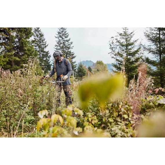 Denne robuste gresstrimmeren er designet for effektivt arbeid på områder med tykt gress. Med en 4-MIX motor er den enkel å starte og har en forbedret startprosess. Utstyrt med et tohåndsstyre og et håndtak som har en integrert stoppknapp, gir den økt kontroll og sikkerhet under bruk. 4-MIX motoren har en større tank, som gir lengre driftstid, og den har en stiv drivaksel som sikrer pålitelig ytelse.