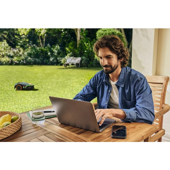 Ultrasoniske sensorer og hastighetstilpasning gjør at robotgressklipperen forsiktig nærmer seg hindringer og kan klippe gresset selv i nærheten av objekter. Den intelligente kjørestilen gjør klippingen effektiv selv på små områder, og sensorene justerer hastigheten på ujevnt underlag.
