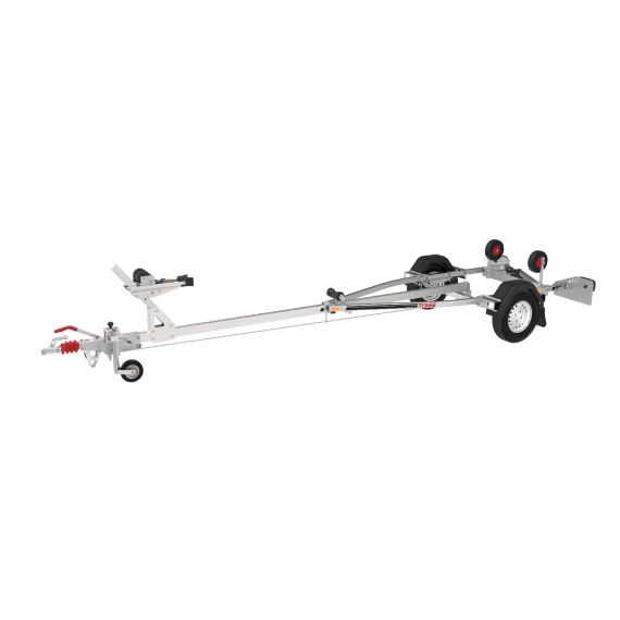 Fronten av båthengeren har en justerbar baugstøtte og en pålitelig Goliath-vinsj med reim. Torsjonsaksler fra Knott og rustfrie bremsewirer bidrar til lengre levetid og pålitelighet.