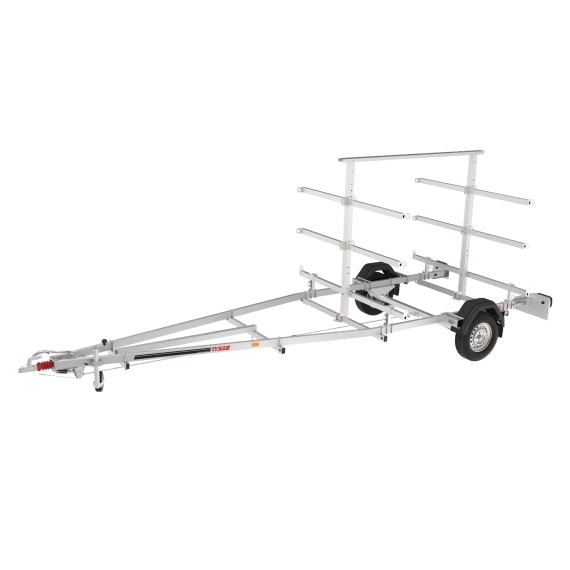 Den tilhengeren kommer med 8 armer, og med traversen på bunnen gir det deg muligheten til å stable kanoene i tre etasjer. Hver arm er utstyrt med surringsmuligheter, slik at du trygt kan feste kanoene under transporten.