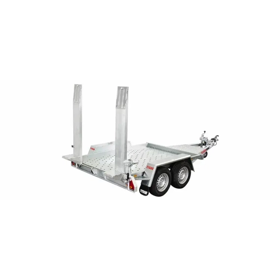 Maskinhengeren er utstyrt med en imponerende nyttelastkapasitet. Med integrerte surrepunkter i bunnen gir den et bredt spekter av muligheter for sikker fiksering av lasten. De hengslede rampene muliggjør rask og effektiv lasting og lossing av maskiner.