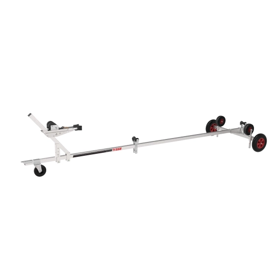 Tysse's opplagshengere gjør det enkelt og sikkert å trekke opp og oppbevare båten din. Med hjul utstyrt med plastnav som tåler sjøvann, kan hengeren enkelt trilles helt ut i vannet. Den har også en justerbar baugstøtte og aksler, som gjør den fleksibel og forenkler prosessen med å finne riktig tyngdepunkt når du plasserer båten på hengeren.