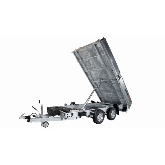 Bakover-tipp med et indre kassemål på 358x178 og en imponerende nyttelast på 2400 kg. Den har en stålbunn som tåler kraftig belastning fra en gravemaskinskuff. Tippsylinderen er dimensjonert for å tåle vekten til tilhengeren, noe som øker levetiden betydelig.